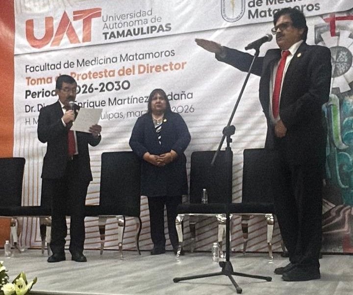 Reiterando el compromiso de fortalecer la calidad educativa y consolidar el liderazgo institucional, el rector de la Universidad Autónoma de Tamaulipas (UAT), Dámaso Anaya Alvarado, encabezó la toma de protesta del Dr. Dionisio Enrique Martínez Saldaña como director de la Facultad de Medicina Matamoros para el periodo 2026-2030.