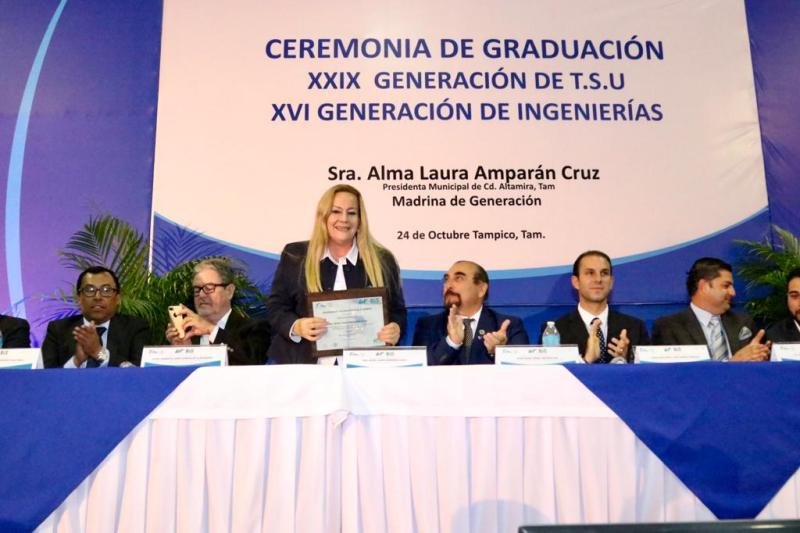 Reconociendo el esfuerzo, talento y dedicación de los estudiantes del instituto educativo, la presidenta municipal Alma Laura Amparán Cruz, quien fue madrina de la XXIX Generación de Técnico Superior Universitario y de la XVI Generación de Ingeniería de la Universidad Tecnológica de Altamira, aseveró que los jóvenes son, hoy en día, los líderes del presente y del futuro de Tamaulipas.