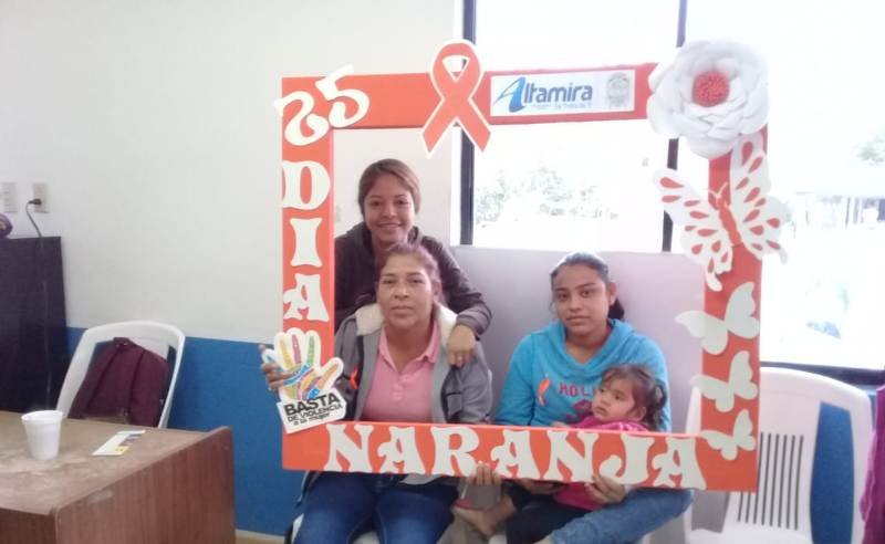 Como parte de las acciones emprendidas por el Gobierno Municipal de Altamira para la erradicación de la violencia contra la mujer y la reconstrucción del tejido social, en el marco del Día Naranja se pusieron a disposición de las mujeres residentes de la zona norte los servicios de atención psicológica y jurídica, además de la entrega de violentómetros por parte de la Secretaría de Bienestar Social a través de la Dirección de Atención a la Mujer.