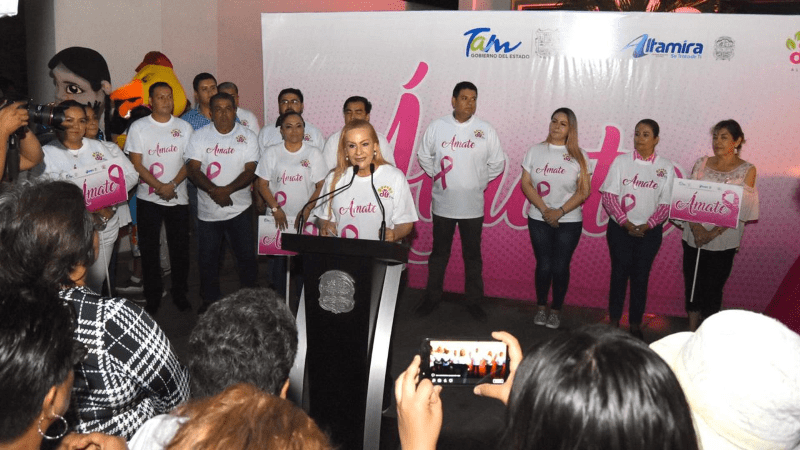 Por su parte, la presidenta del Sistema DIF Altamira, Alma Laura Hernández Amparán, destacó la importancia de la detección oportuna para que siga siendo el punto más relevante de la lucha contra esa enfermedad, por lo que exhortó a las mujeres a cuidarse, quererse y autoexplorarse, para reducir los riesgos de padecer cáncer de mama.