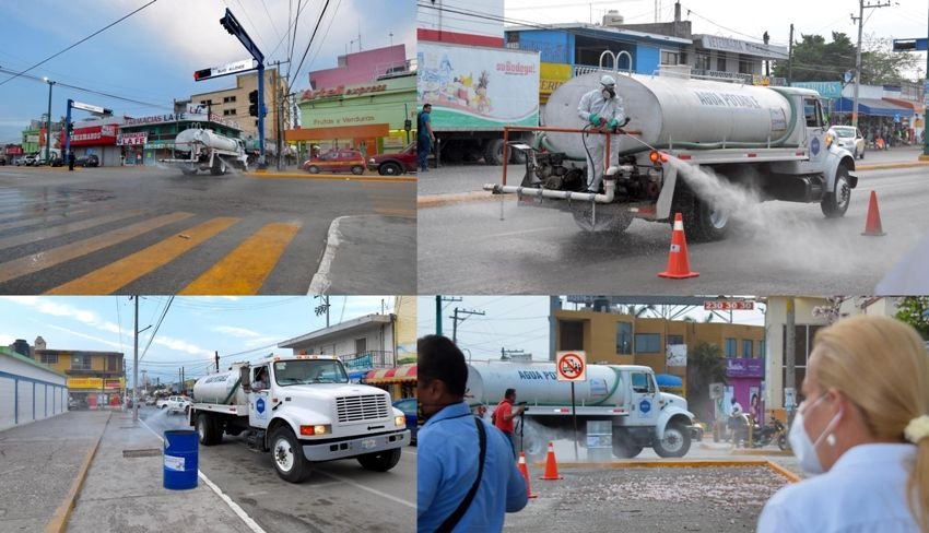 Con el firme propósito de garantizar un entorno seguro a la ciudadanía y sector comercial para prevenir contagios de COVID-19, la alcaldesa Alma Laura Amparán Cruz supervisó las labores de sanitización emprendidas por el Gobierno Municipal de Altamira, en coordinación con la Secretaría de Salud de Tamaulipas y la COEPRIS, en la Zona Centro.