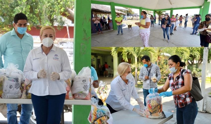 Posteriormente, Amparán Cruz, acompañada de la presidenta del Sistema para el Desarrollo Integral de la Familia de Altamira, Alma Laura Hernández Amparán, entregó en la Escuela Primaria “Josefa Ortiz de Domínguez’’, del ejido El Fuerte, despensas con dotación de verdura, contando con todas las medidas preventivas ante el COVID 19.