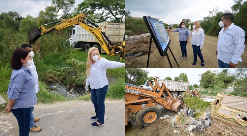 Acompañada por el secretario de Servicios Públicos, Armando Olvera Pérez, y la secretaria de Obras Públicas, Desarrollo Urbano y Medio Ambiente, Patricia Hernández Reyna, la presidenta municipal constató las labores efectuadas por cuadrillas de trabajadores municipales que mediante maquinaria retroexcavadora lograron recolectar muebles, escombro, colchones, llantas, y demás basura doméstica.