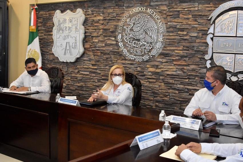 La jefa edilicia presidió la citada reunión que se efectuó en la sala de cabildo del Ayuntamiento de Altamira, la cual contó con la asistencia del secretario estatal de Bienestar Social, Rómulo Garza Martínez, representante del Gobierno del Estado, indicando que en Altamira, los sistemas de salud y seguridad social representan una prioridad para nuestra sociedad y por ello, “estamos aplicando todas las medidas dictadas por el Comité de Seguridad en Salud del Estado, junto con la estrategia que marca el gobernador Francisco García Cabeza de Vaca’’.