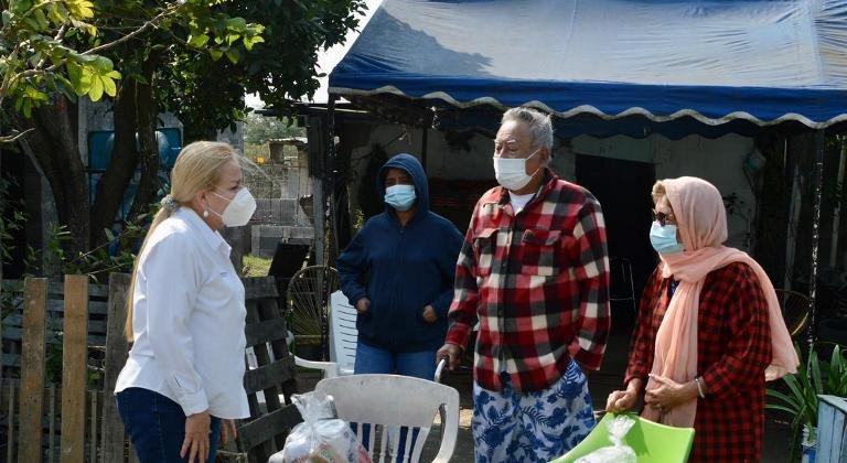 La alcaldesa de Altamira, Alma Laura Amparán Cruz, entregó despensas con productos básicos a personas adultas mayores residentes de las colonias Diana Laura Riojas y Enrique Cárdenas González, en atención a lo comprendido en el programa Adulto Activo para ayudar a los abuelitos a resistir de mejor manera la situación económica derivada por la pandemia del COVID-19.