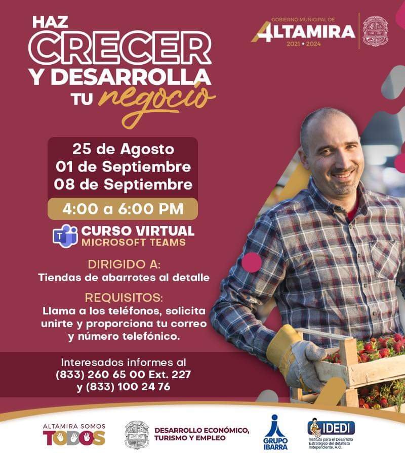 La Dirección de Desarrollo Económico, Turismo y Empleo en coordinación con Grupo Ibarra e IDEDI te invitan al Curso Virtual: