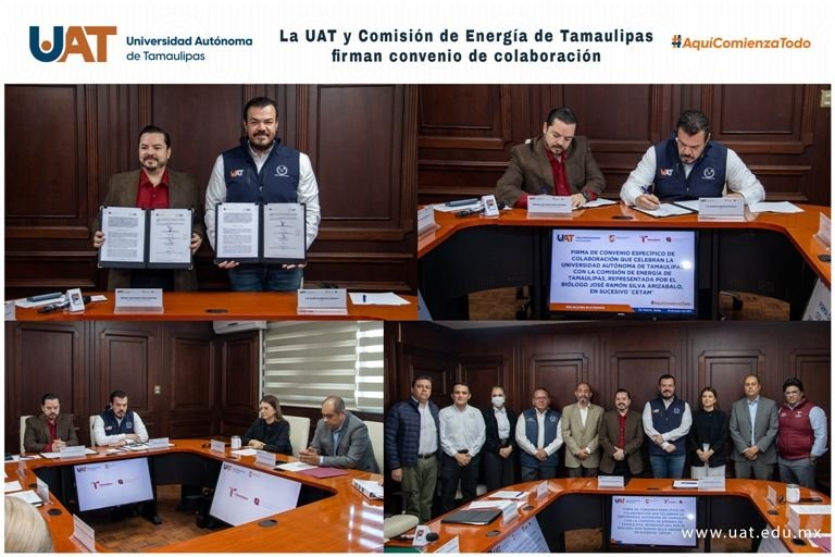 La Universidad Autónoma de Tamaulipas (UAT) y la Comisión de Energía de Tamaulipas (CETAM) celebraron la firma de un convenio de colaboración específica en el que unen esfuerzos para aprovechar el potencial energético de la entidad, mediante el desarrollo de investigación, tecnologías y conocimientos que contribuyan en aportar beneficios directos a la sociedad.
